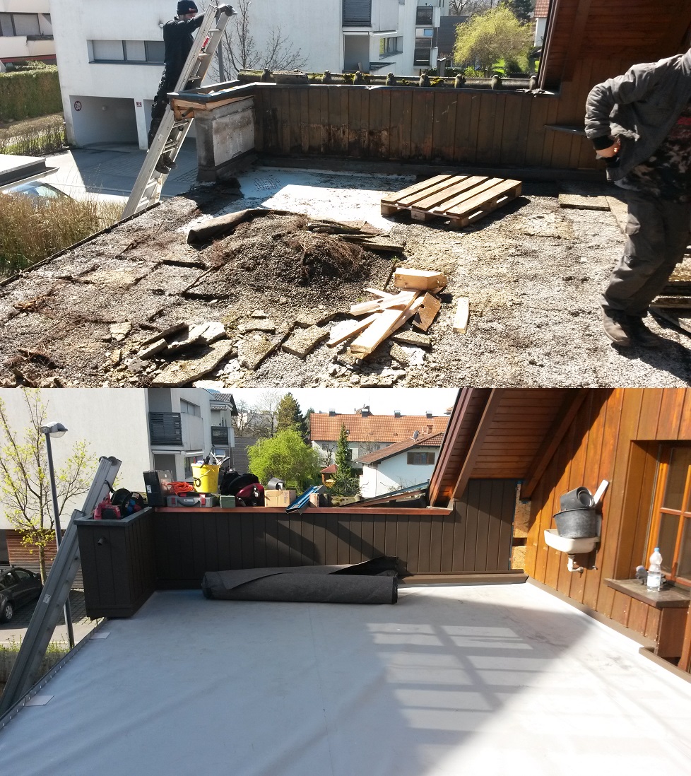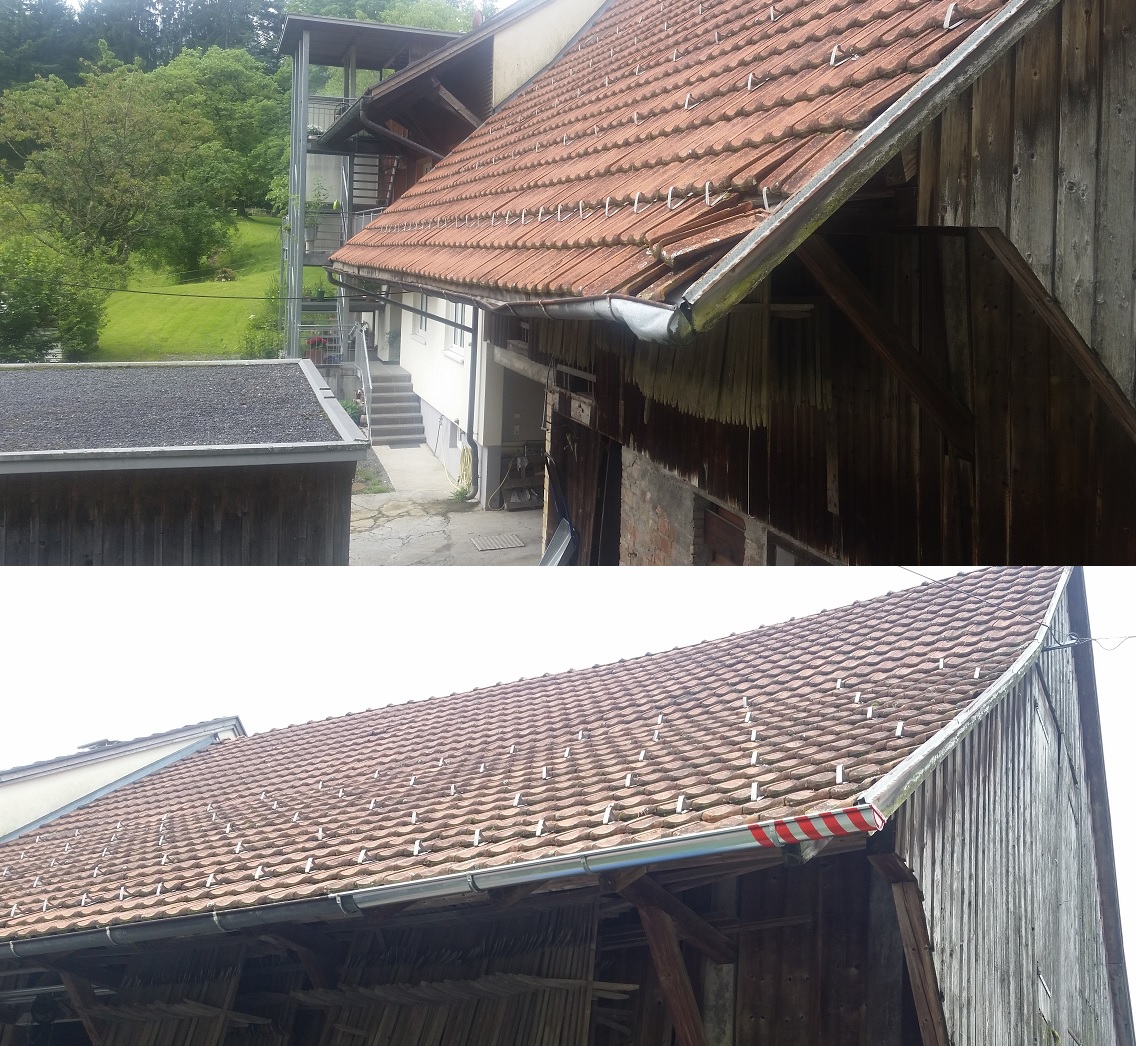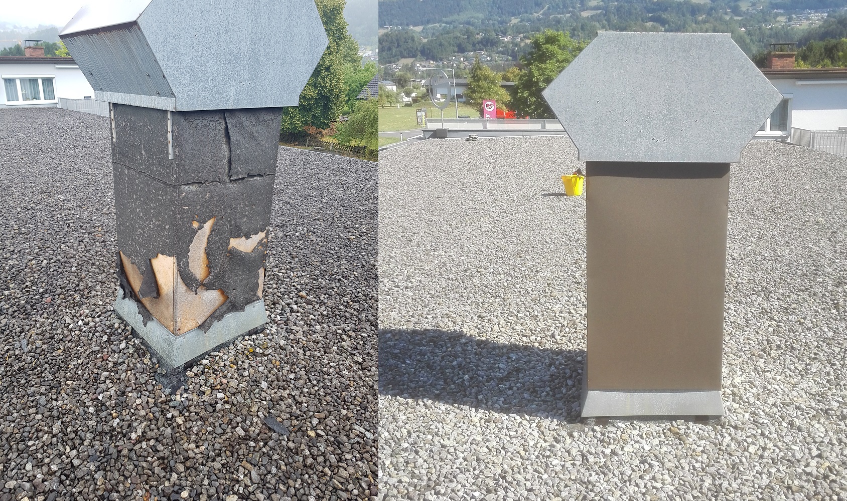 Zahlreiche Probleme an alten Gebäuden werden durch ein altes Dach verursacht. Dazu gehören Schäden an der Fassade ebenso wie Feuchtigkeit im Mauerwerk, das zur Schimmelbildung führen kann. Undichtigkeiten im Dach, die durch Verwitterung oder Stürme entstanden sind, spielen dabei gleichermaßen eine Rolle wie undichte Verblechungen, zum Beispiel bei Dachanschlüssen oder rund um den Kamin. Daher gehört zu einer Sanierung nicht nur die Kontrolle des Dachstuhls, sondern ebenso eine Überprüfung der Dacheindeckung und aller Spenglerarbeiten. Wir führen diese Kontrollen gerne für Sie durch.